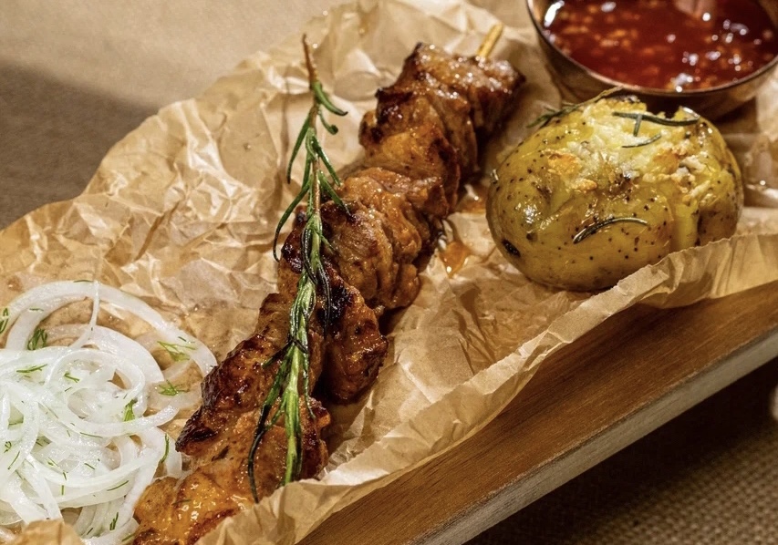 Шашлык из свиной шеи с печёным картофелем