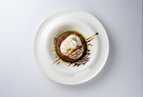 Микс салата, томаты черри, соус Цезарь, яйцо перепелиное, тигровые креветки, гренки чесночные, сыр Парезан.